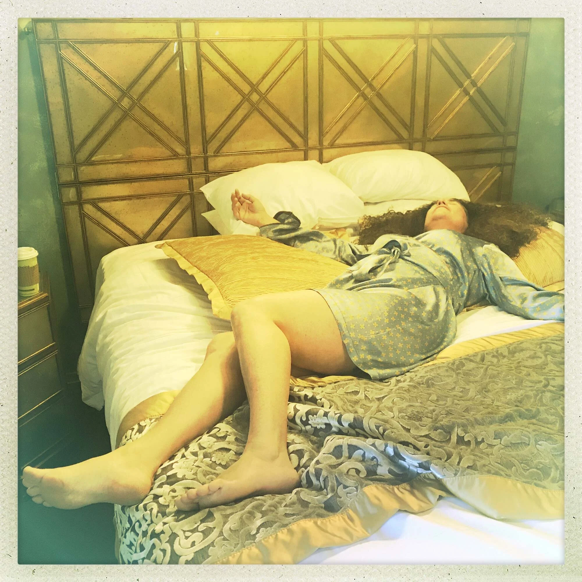 a series of 6 photographs. Goldman went to take pictures of women on bedspreads at the Chateau Marmont. The beds don’t have bedspreads.