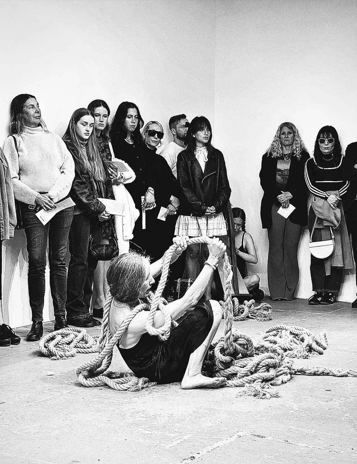 While it's impossible to know if we can ever fully experience our bodies outside of the linguistic and patriarchal social institutions that not only regulate them but define them, Disentanglement/Re-embodiment challenges the viewer to take seriously the possibility of a self independent of a system based on power relations. In performances that use ropes and women's hair, music and dance, Goldman makes visible the invisible structures of patriarchy and attempts to untangle them, extricating female bodies from their insidious and subjugating webs. Goldman, a long-time activist who advocates for the rights of those marginalized by patriarchy is skilled at pragmatic resistance, fighting injustice from a position inside our political and social systems. In her art and Tantric meditation practice, however, she explores a more radical form of resistance, a resistance that is founded on an expansive consciousness that demolishes the oppressive structures the political right is so hellbent on solidifying.